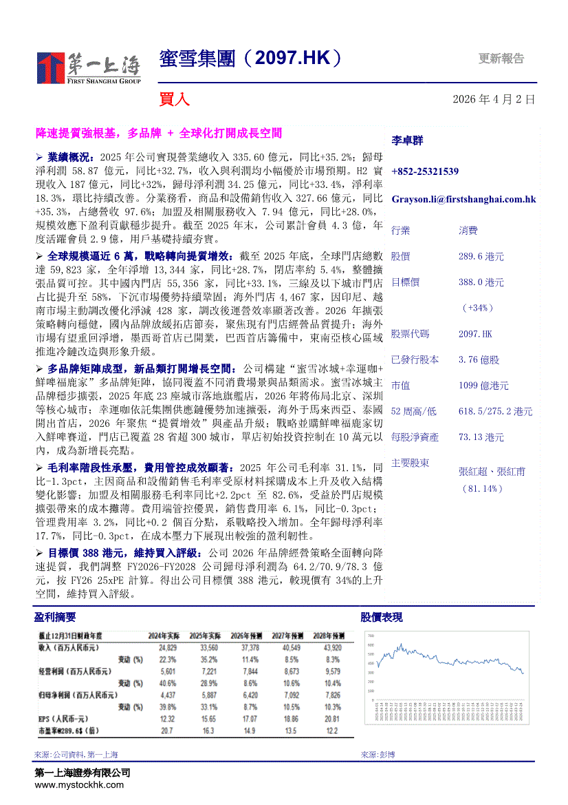 蜜雪集团:第一上海-蜜雪集团-2097.HK-降速提质强根基,多品牌+全球化打开成长空间-260402