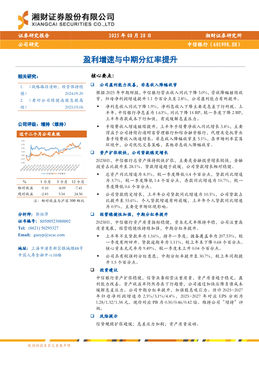 中信银行:湘财证券-中信银行-601998-盈利增速与中期分红率提升-250828