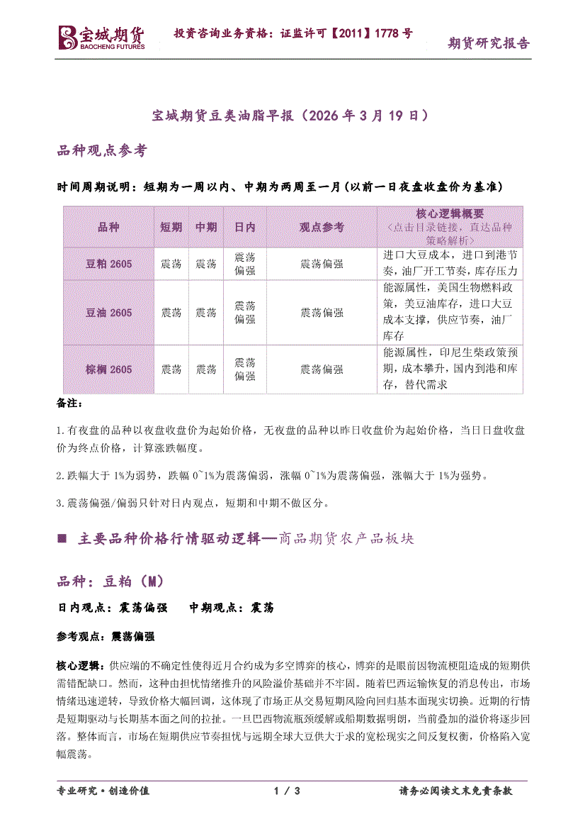 宝城期货-豆类油脂早报-260319