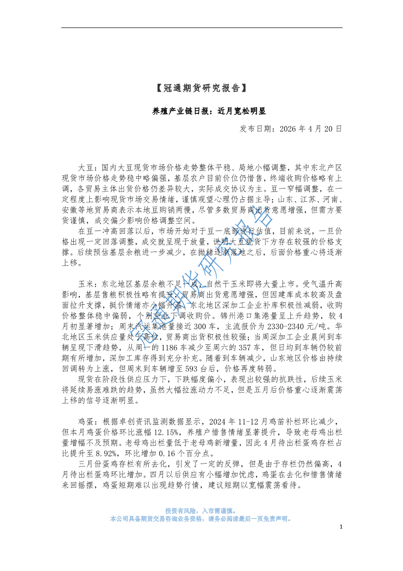 冠通期货-养殖产业链日报:近月宽松明显-260421
