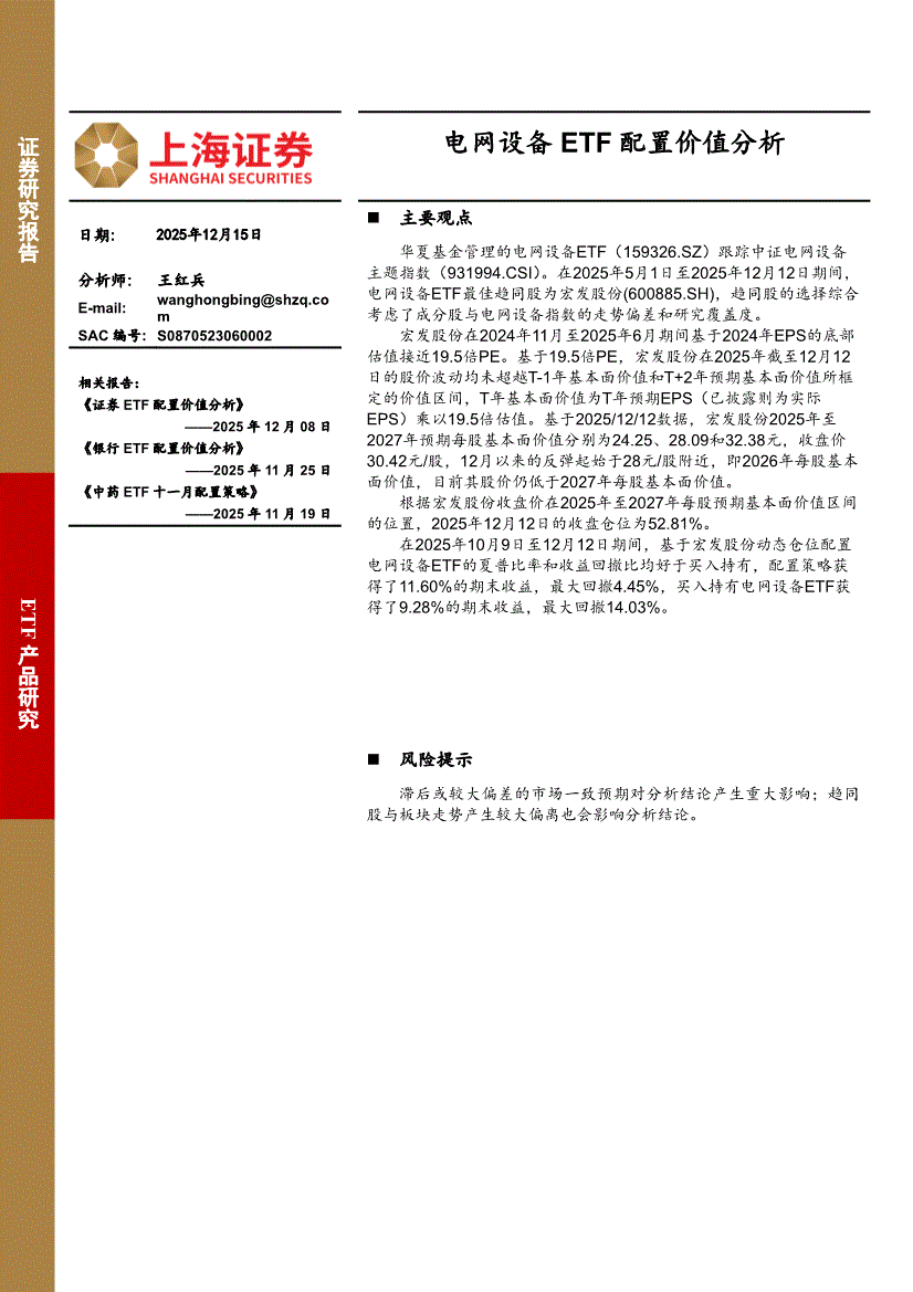上海证券-ETF产品研究:电网设备ETF配置价值分析-251215