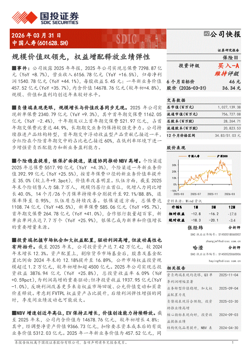 中国人寿:国投证券-中国人寿-601628-规模价值双领先,权益增配释放业绩弹性-260331