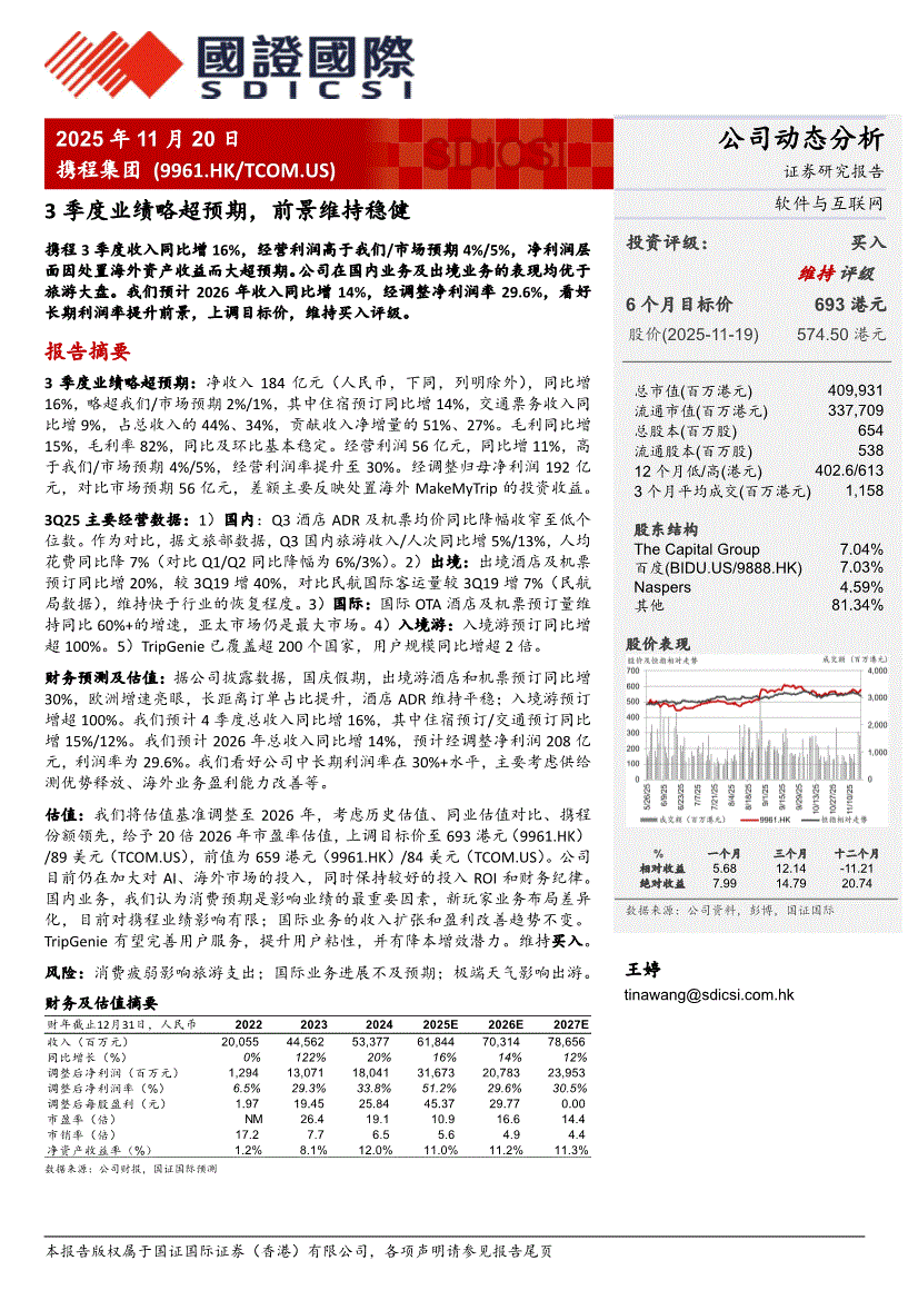 国证国际-携程集团-9961.HK-3季度业绩略超预期,前景维持稳健-251120