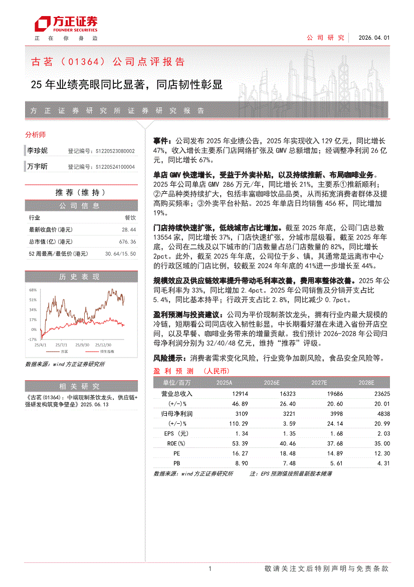 古茗:方正证券-古茗-1364.HK-公司点评报告:25年业绩亮眼同比显著,同店韧性彰显-260401