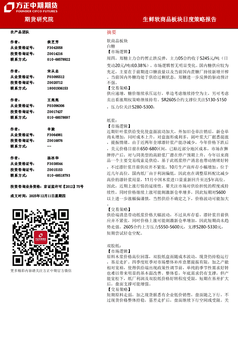 方正中期期货-生鲜软商品板块日度策略报告-251211