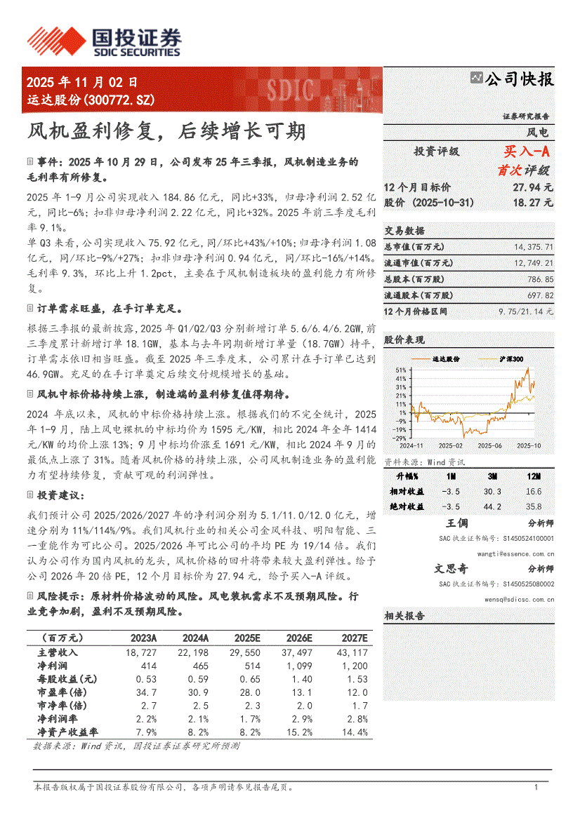 运达股份:国投证券-运达股份-300772-风机盈利修复,后续增长可期-251102