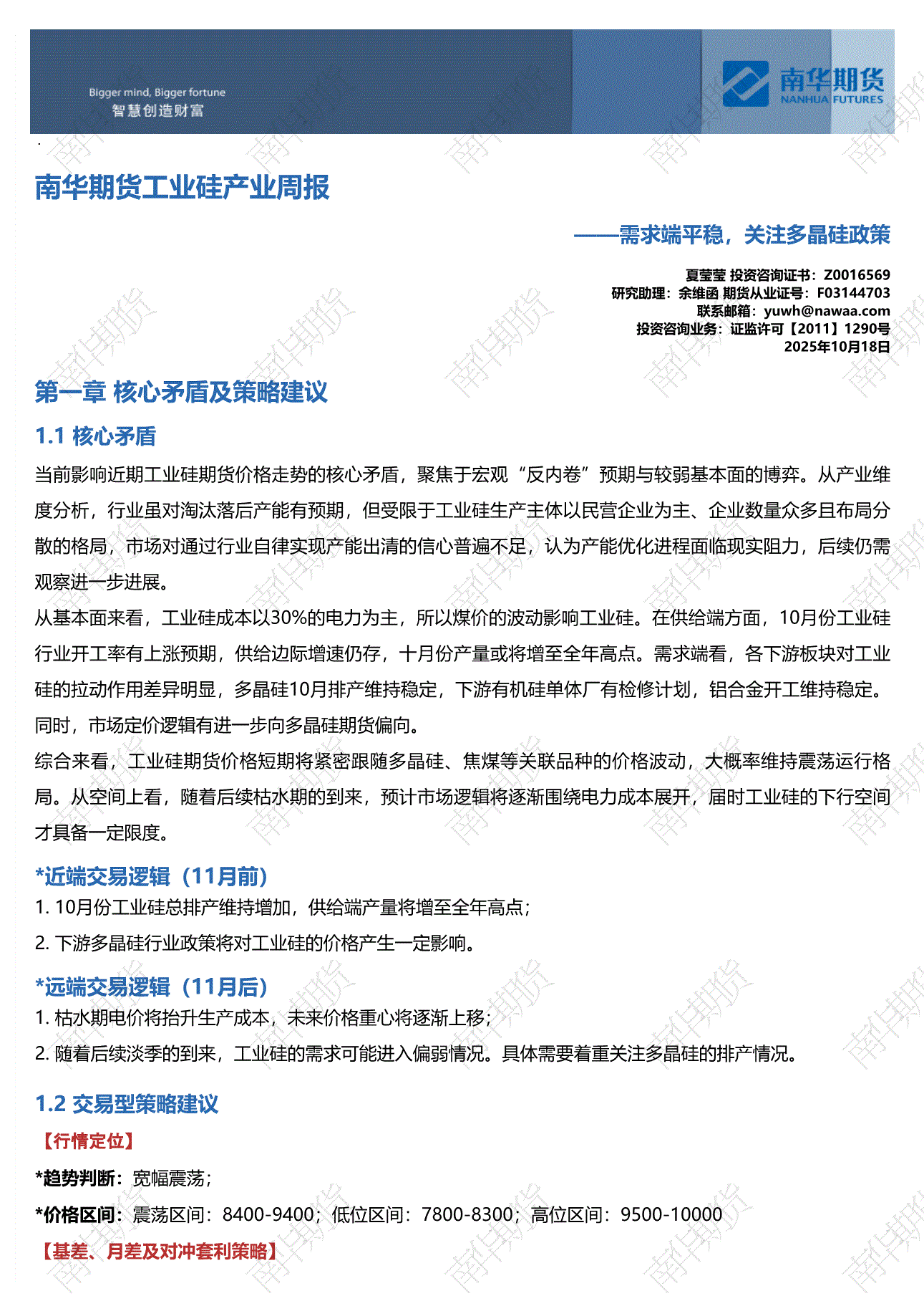 南华期货-工业硅产业周报:需求端平稳,关注多晶硅政策-251018