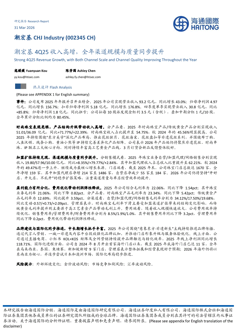 潮宏基:海通国际-潮宏基-002345-潮宏基4Q25收入高增,全年渠道规模与质量同步提升-260331