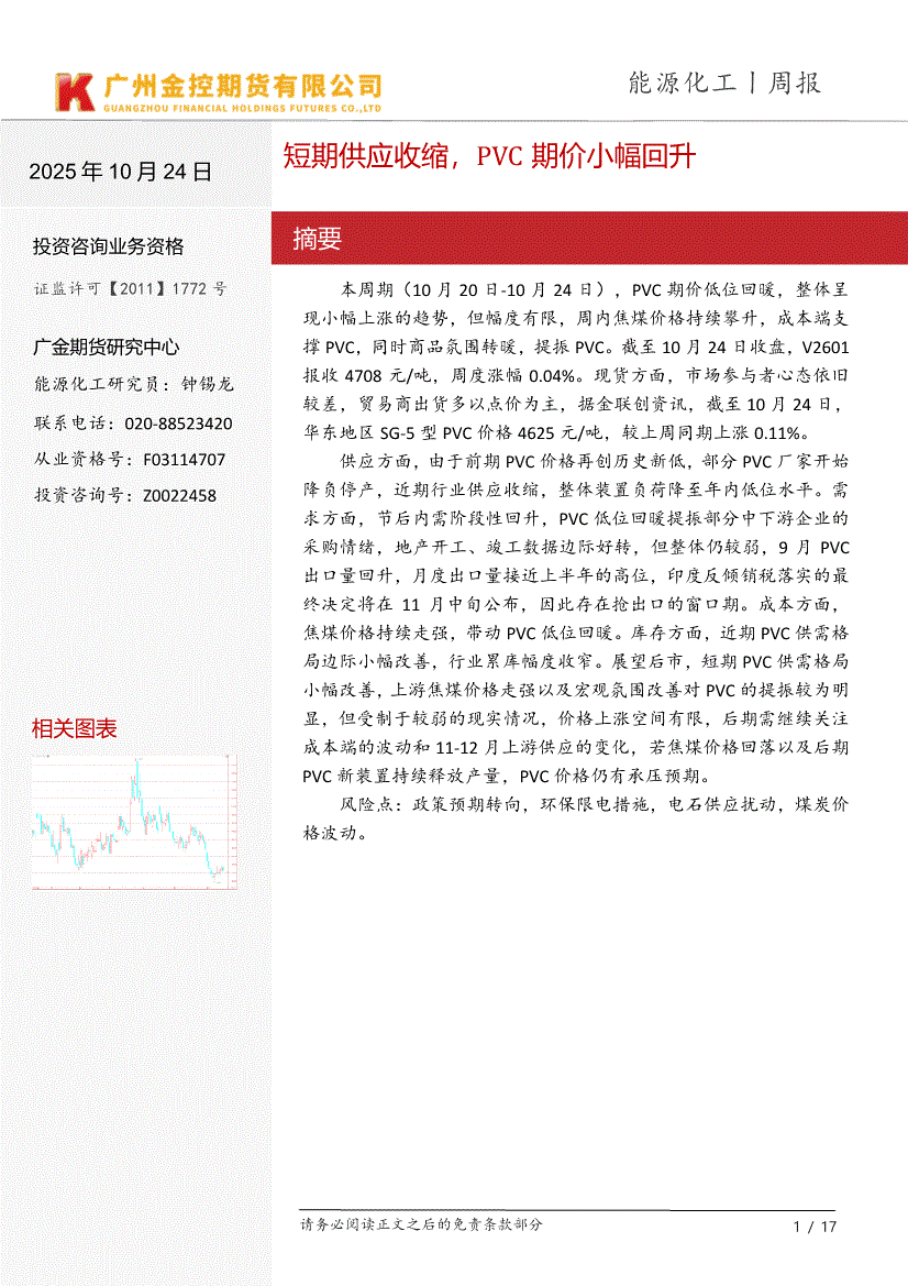 广金期货-能源化工周报:短期供应收缩,PVC期价小幅回升-251024