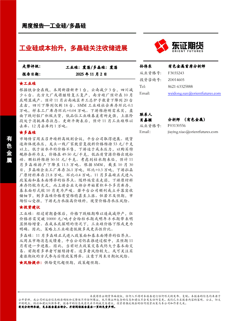 东证期货-周度报告—工业硅/多晶硅:工业硅成本抬升,多晶硅关注收储进展-251102
