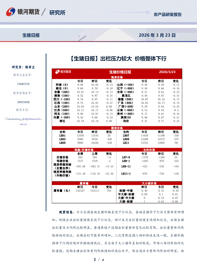 银河期货-生猪日报:出栏压力较大,价格整体下行-260323