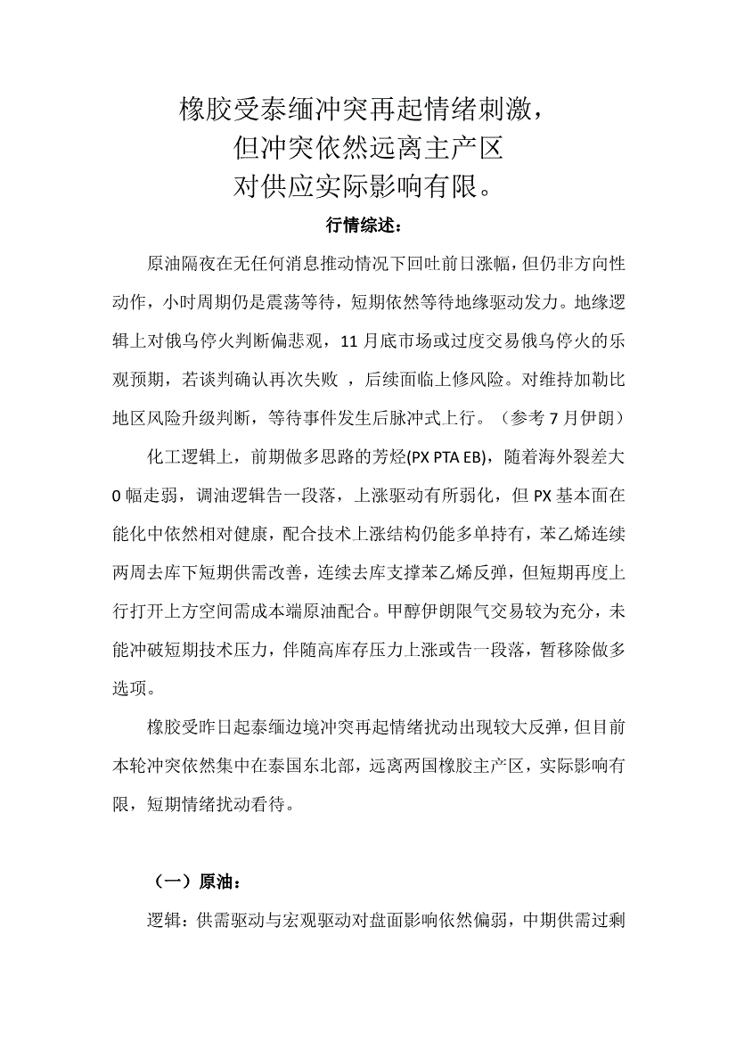 天富期货-橡胶受泰缅冲突再起情绪刺激,但冲突依然远离主产区对供应实际影响有限-251210