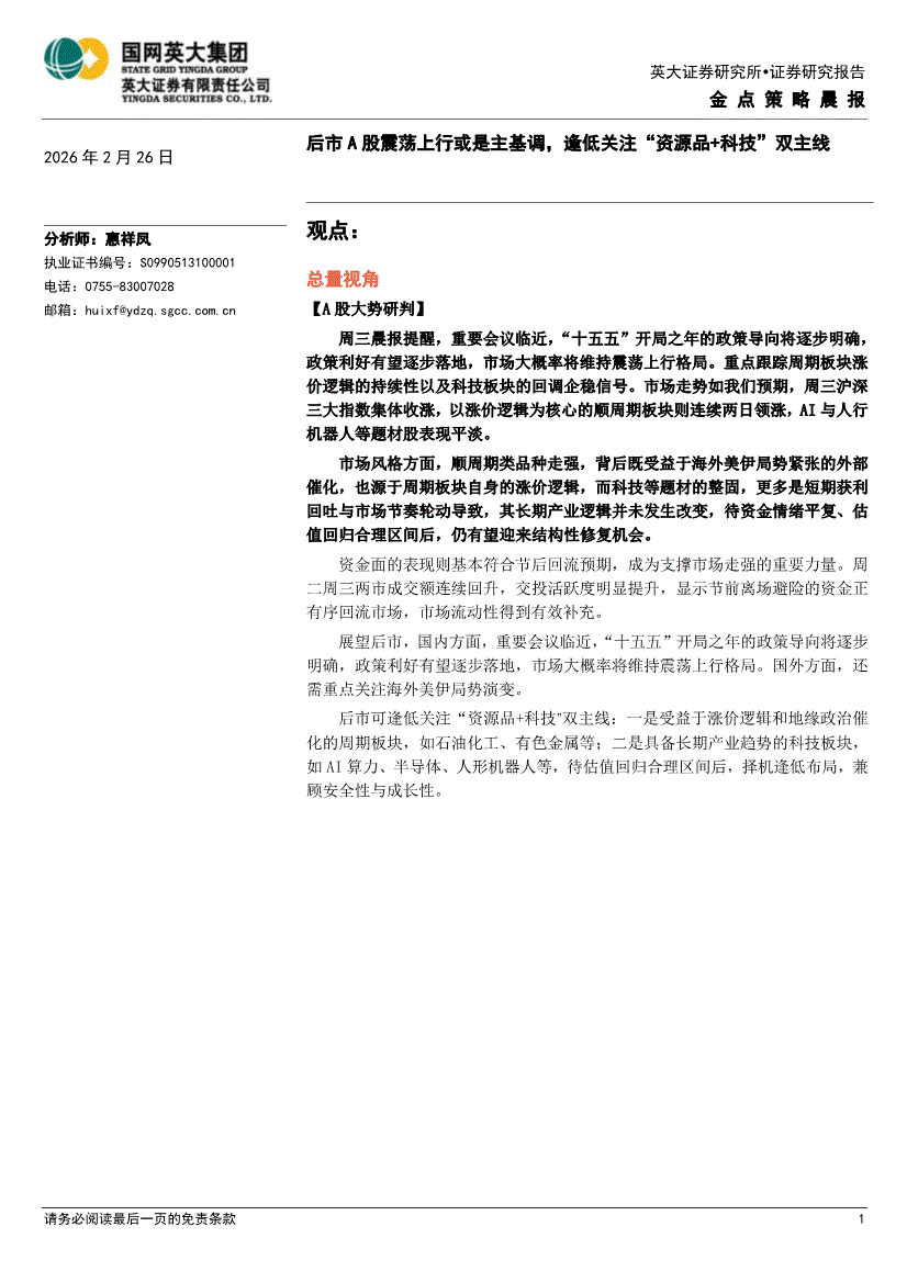 英大证券-每周投资早参:节前市场情绪偏谨慎,个股博弈和结构性轮动为主,节后关注优质成长标的-260209