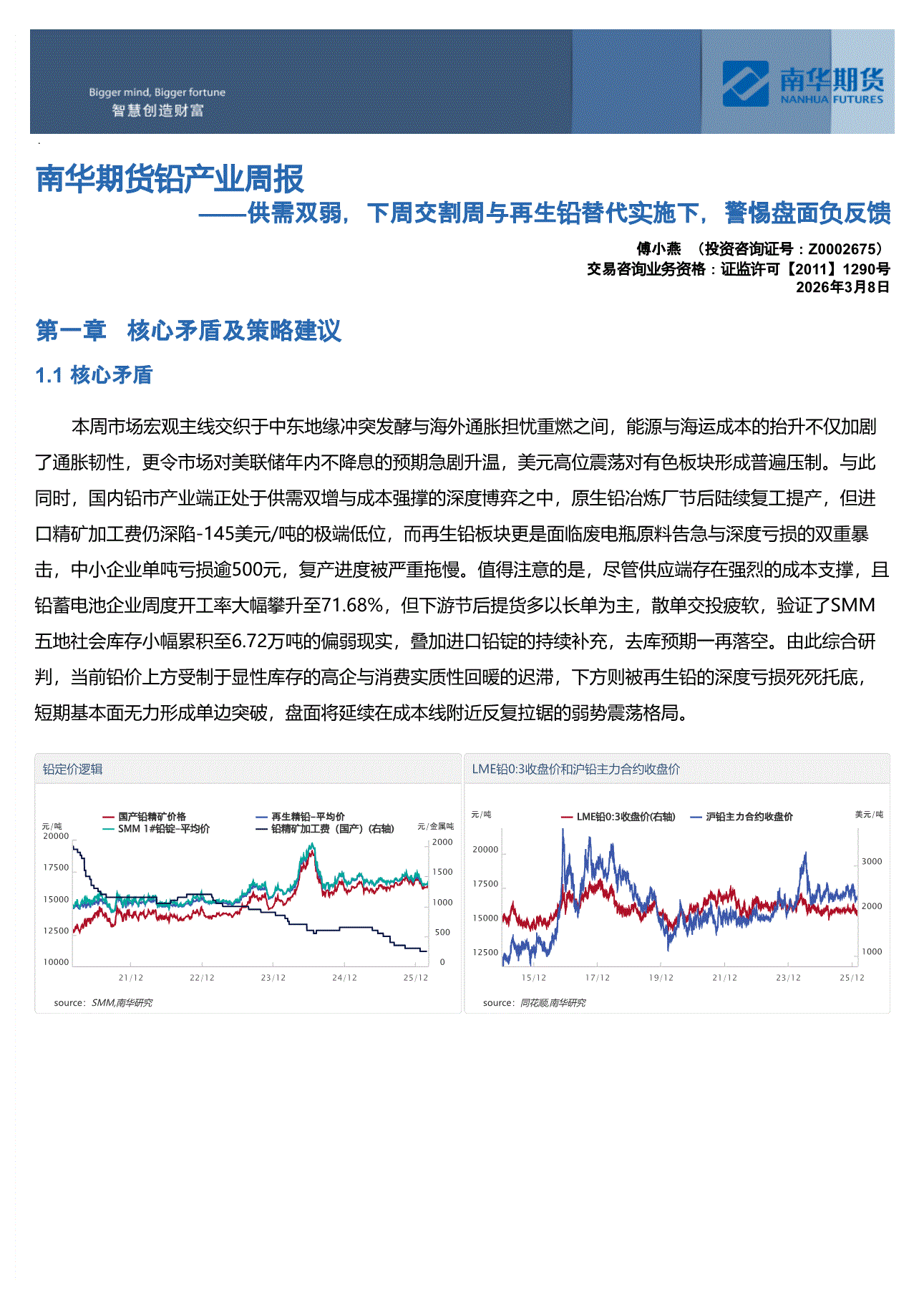南华期货-铅产业周报:供需双弱,下周交割周与再生铅替代实施下,警惕盘面负反馈-260308