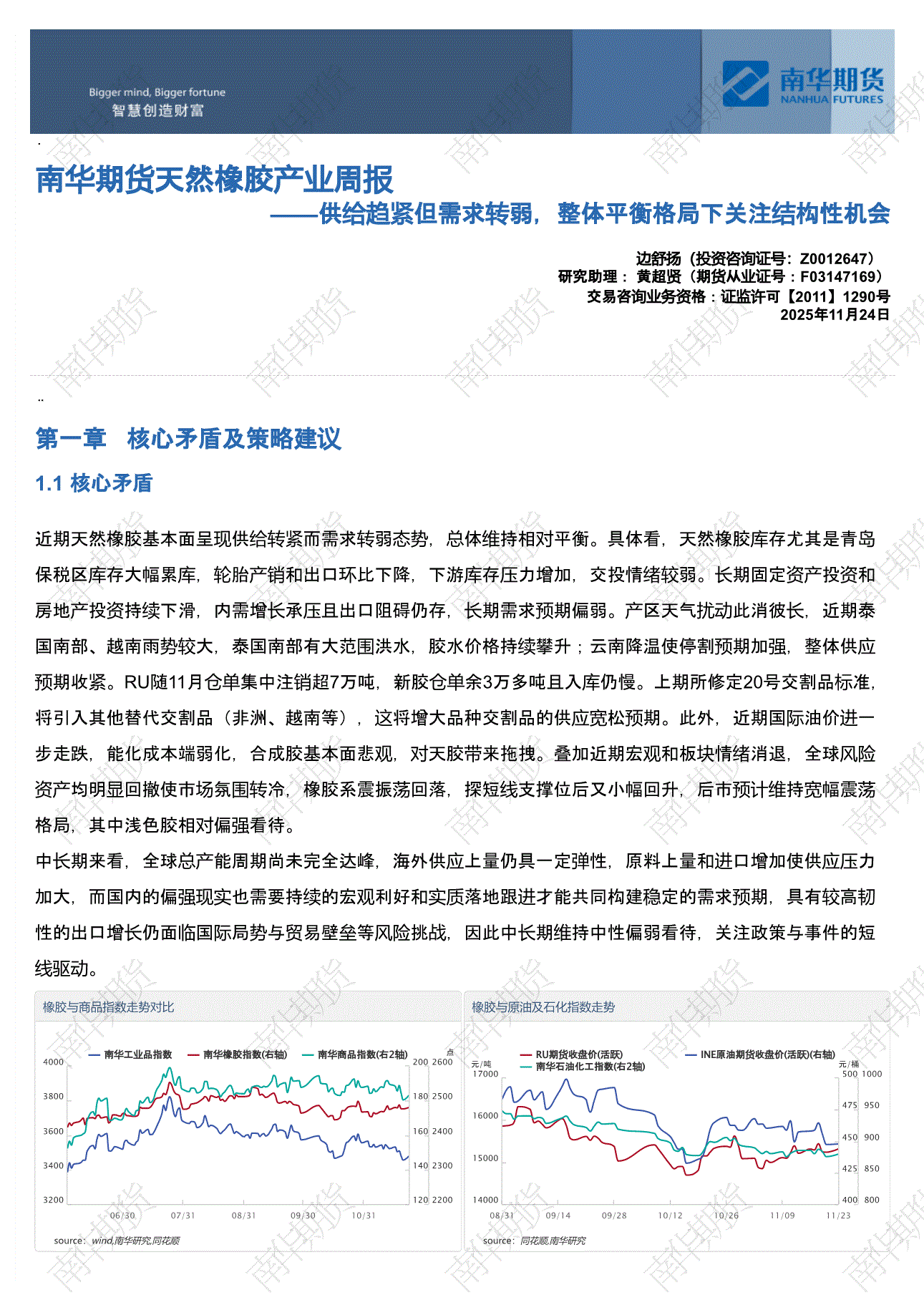 南华期货-天然橡胶产业周报:供给趋紧但需求转弱,整体平衡格局下关注结构性机会-251124