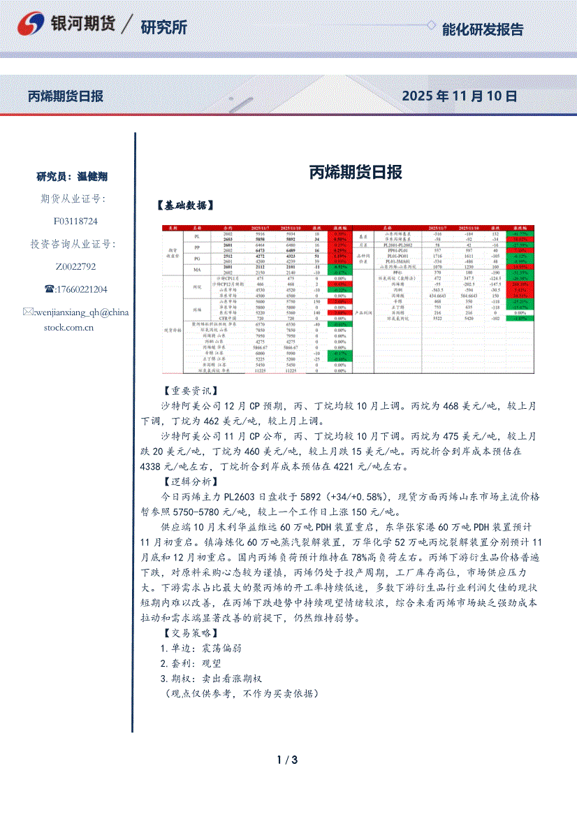银河期货-丙烯月度报告:高库存压制,供应压力仍然较大-251201