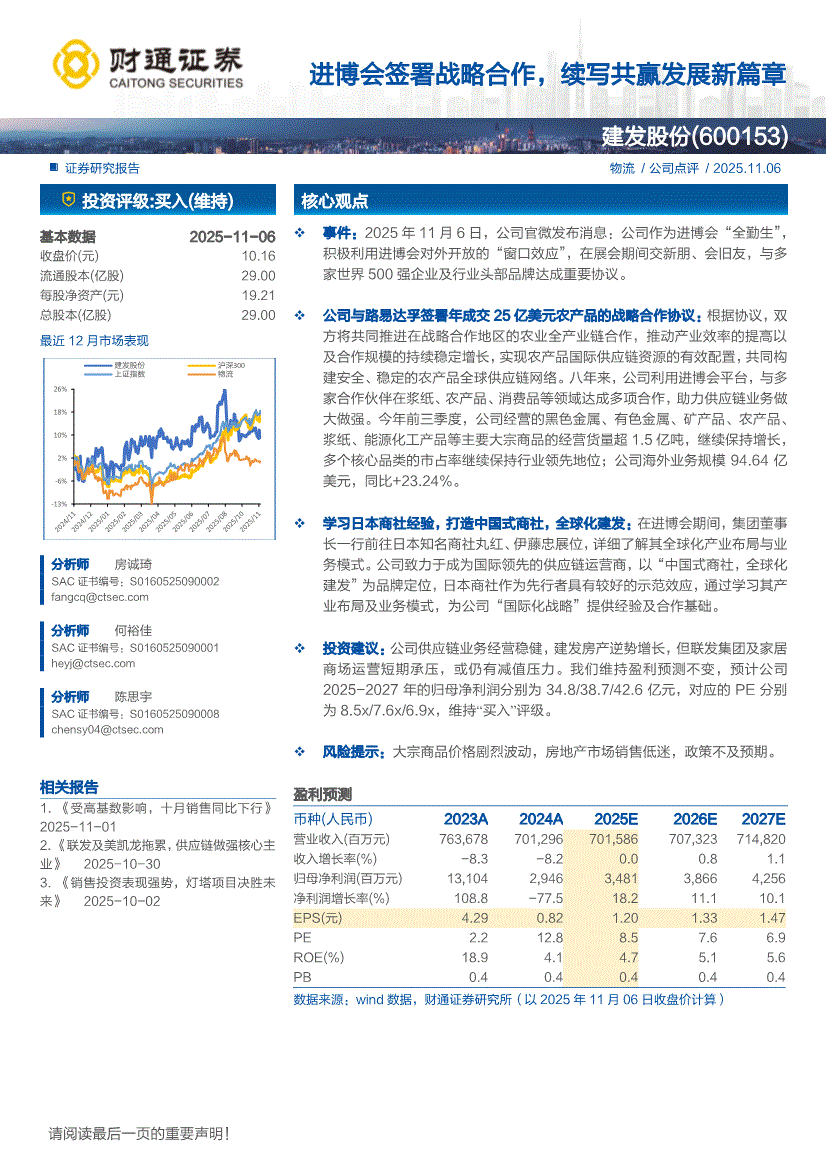 建发股份:财通证券-建发股份-600153-进博会签署战略合作,续写共赢发展新篇章-251106