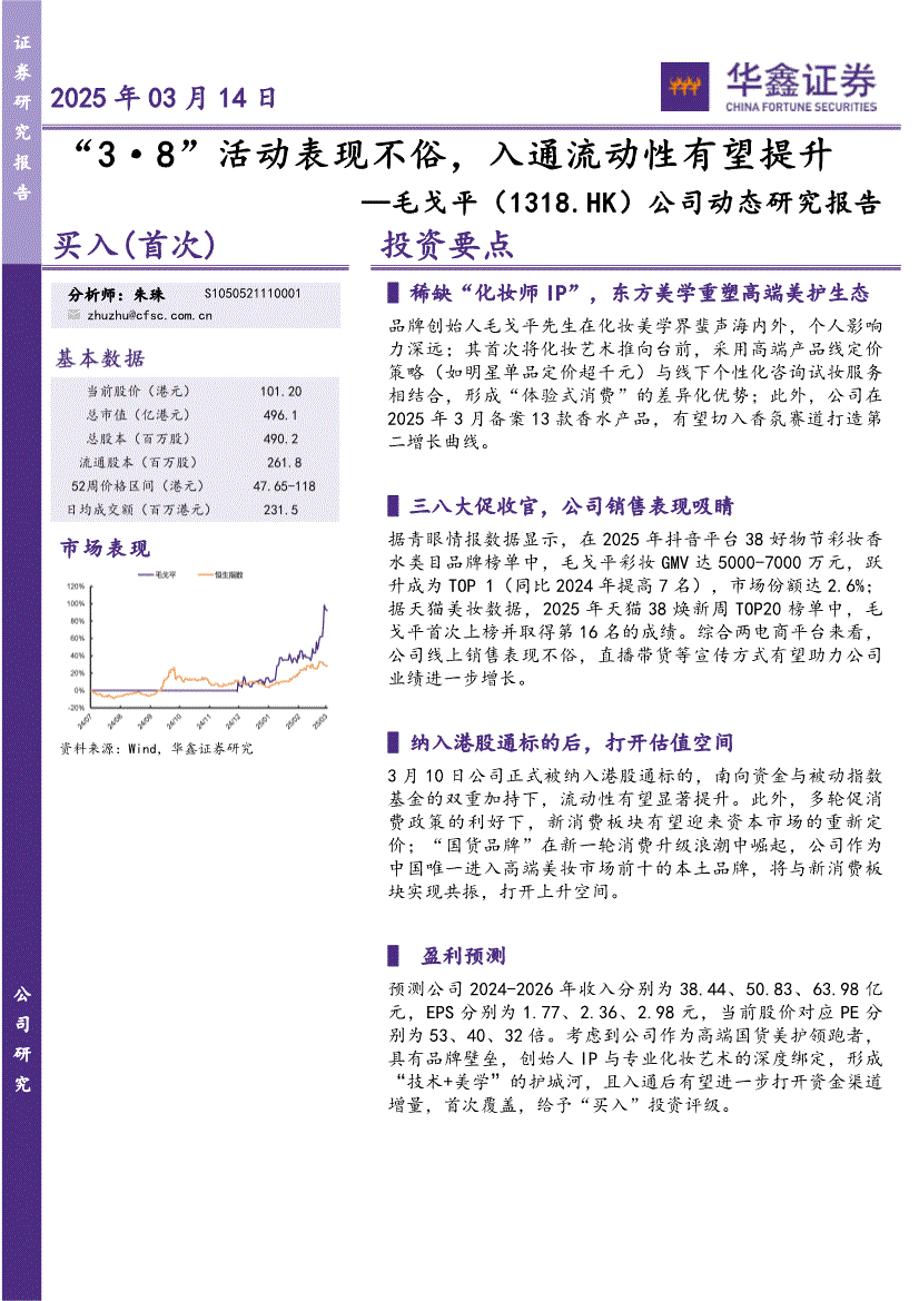 毛戈平:华鑫证券-毛戈平-1318.HK-公司动态研究报告:“3·8”活动表现不俗,入通流动性有望提升-250314