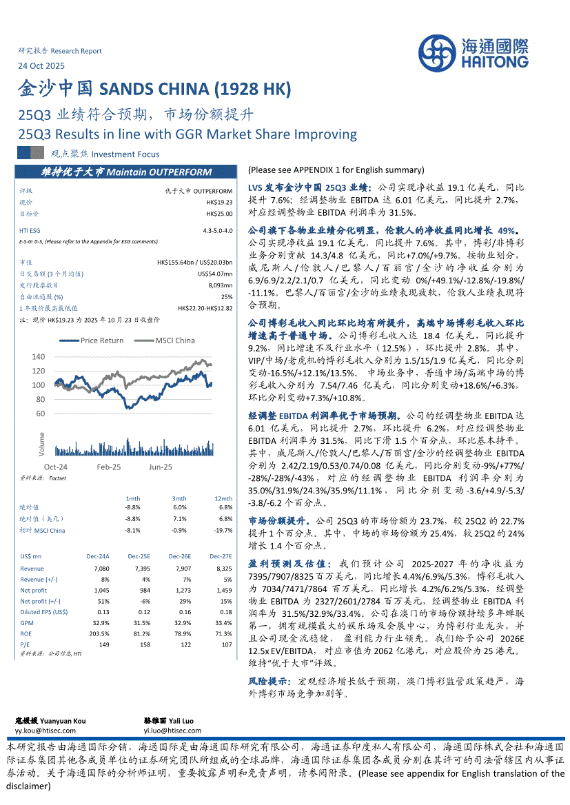 金沙中国:海通国际-金沙中国-1928.HK-25Q3业绩符合预期,市场份额提升-251024