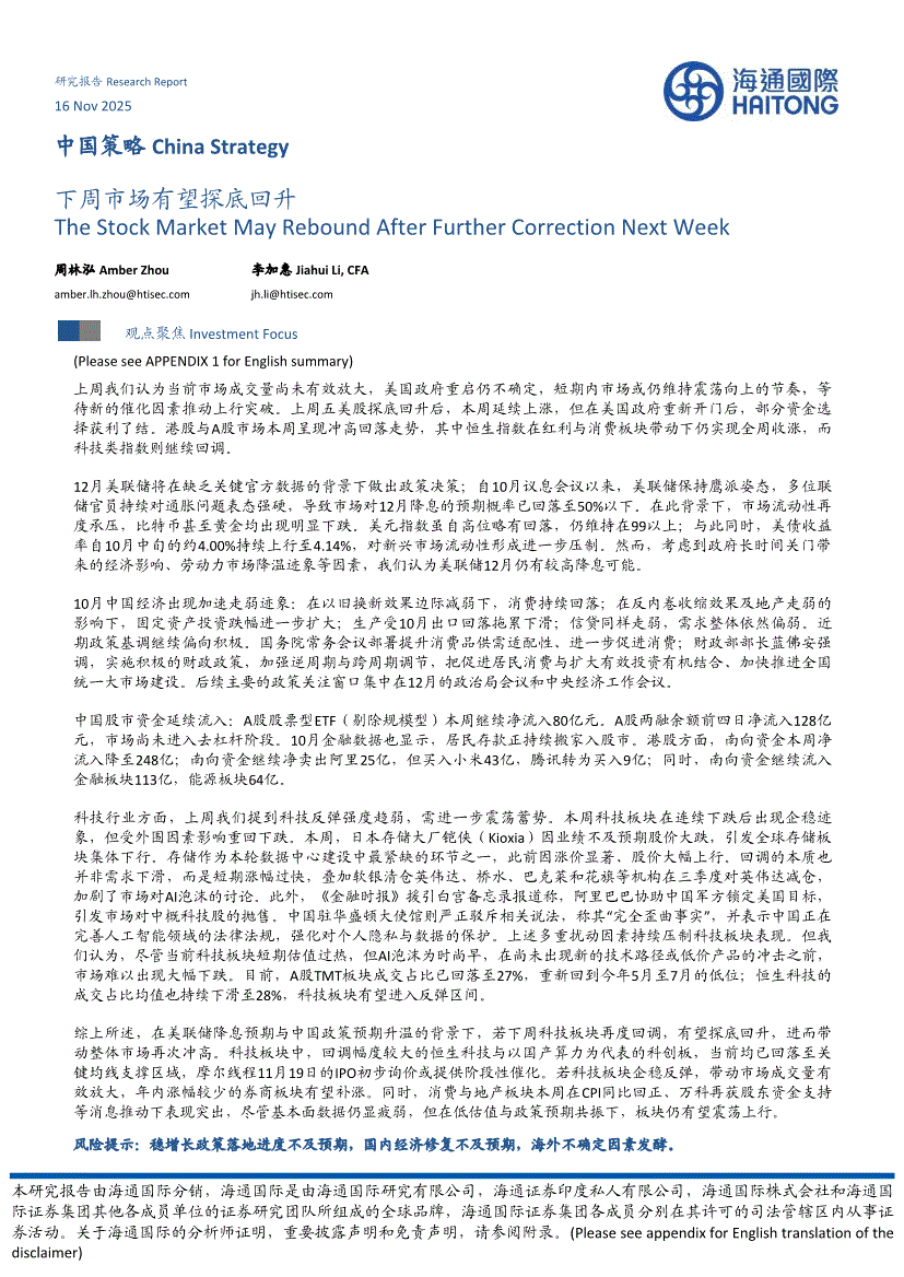 海通国际-中国策略:下周市场有望探底回升-251116