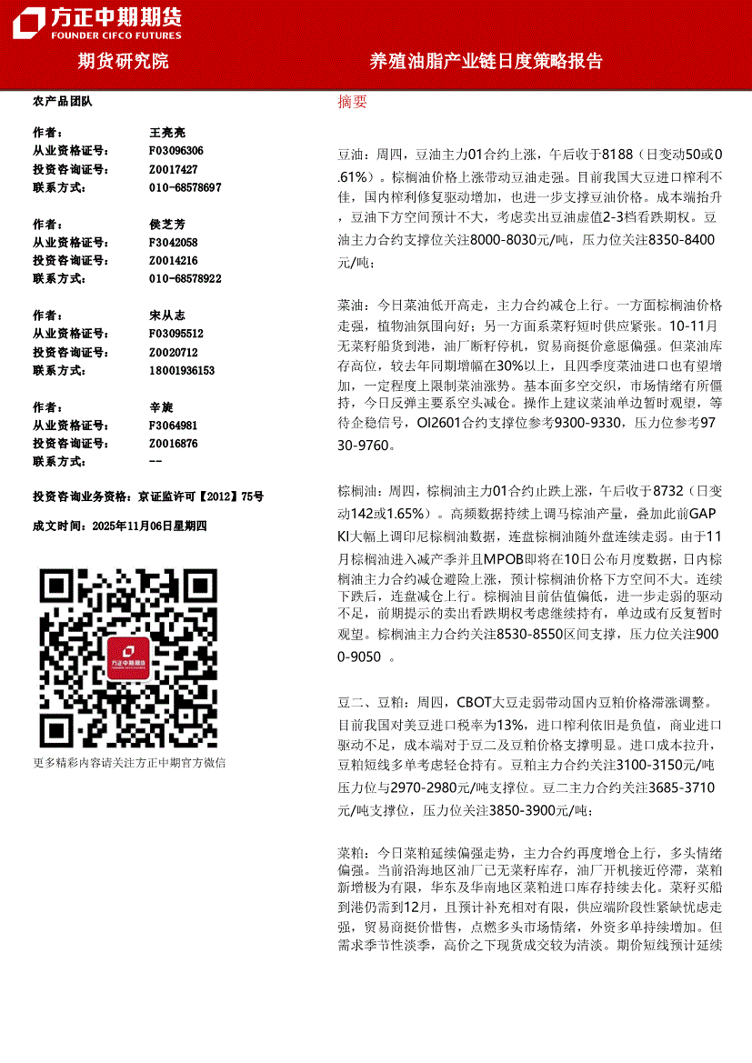 方正中期期货-养殖油脂产业链日度策略报告-251106