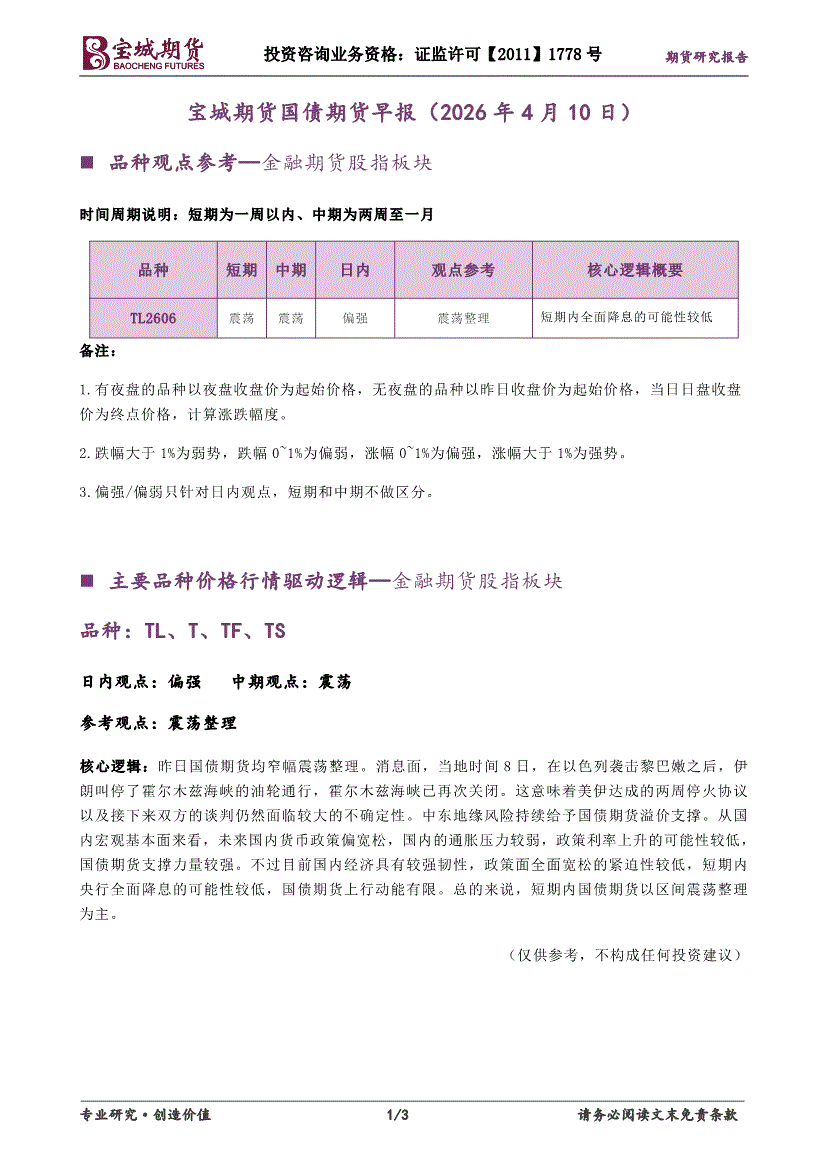 宝城期货-国债期货早报-260410