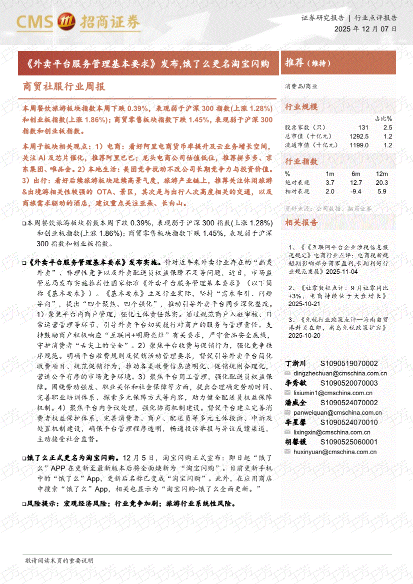 商贸社服行业:招商证券-商贸社服行业周报:《外卖平台服务管理基本要求》发布,饿了么更名淘宝闪购-251207