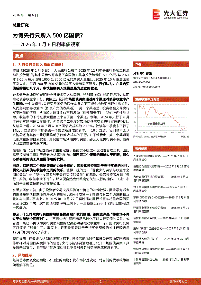 光大证券-2026年1月6日利率债观察:为何央行只购入500亿国债?-260106