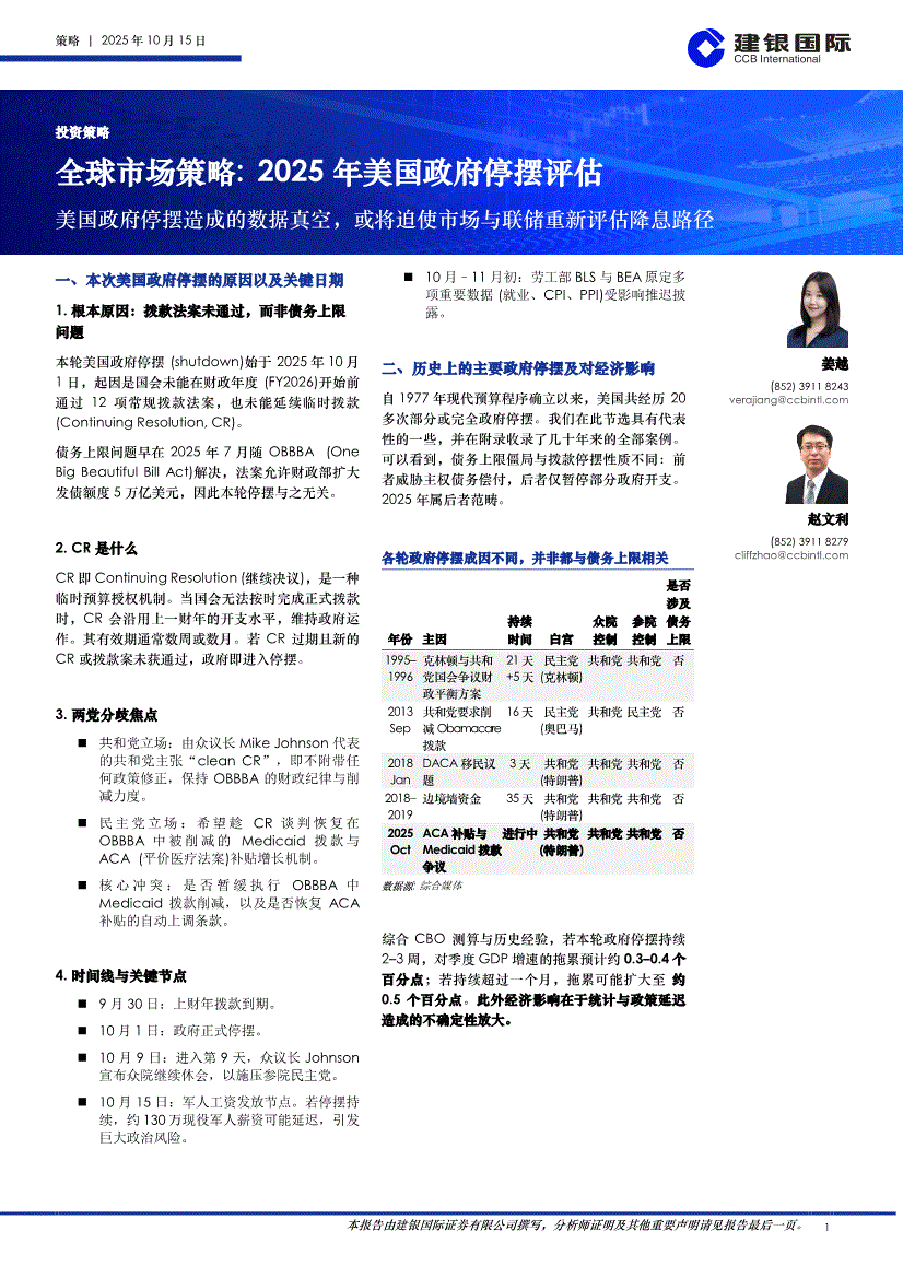 建银国际-全球市场策略: 2025年美国政府停摆评估,美国政府停摆造成的数据真空,或将迫使市场与联储重新评估降息路径-251015