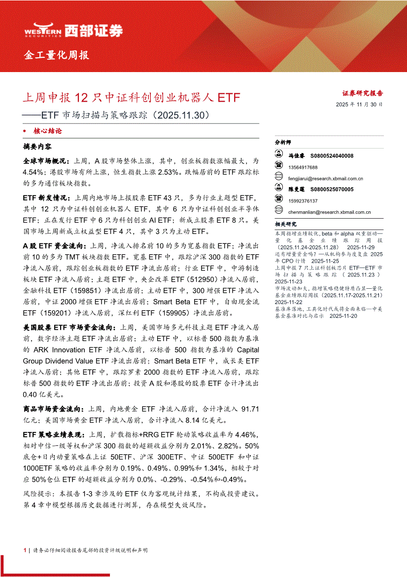 西部证券-ETF市场扫描与策略跟踪:上周申报12只中证科创创业机器人ETF-251130