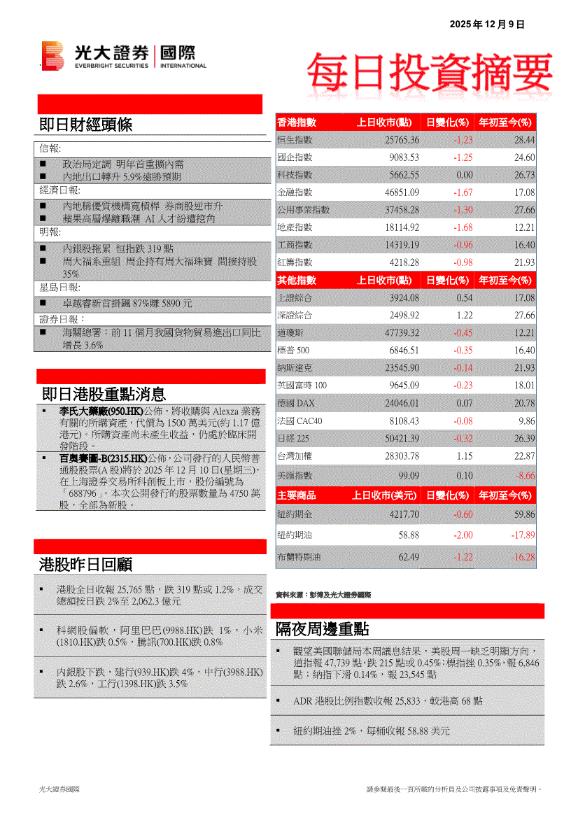 光大证券(国际)-每日投资摘要-251209