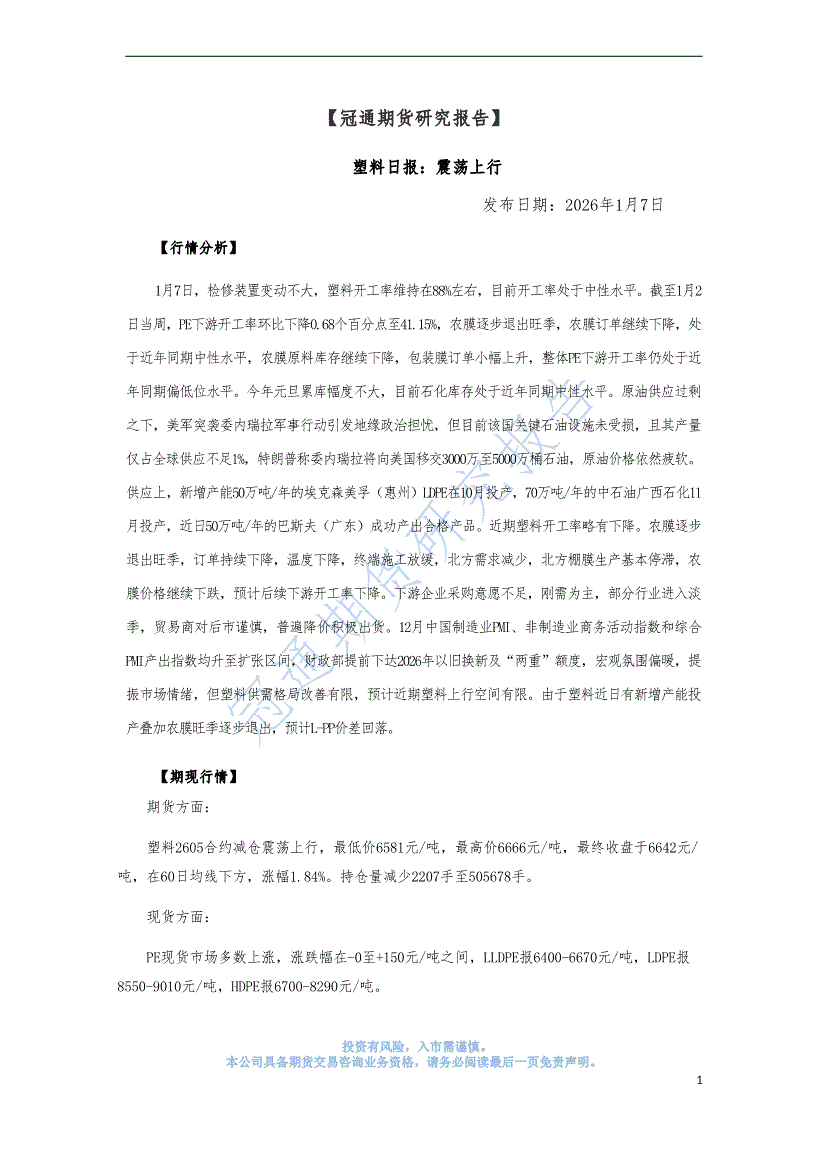 冠通期货-塑料日报:震荡上行-260107
