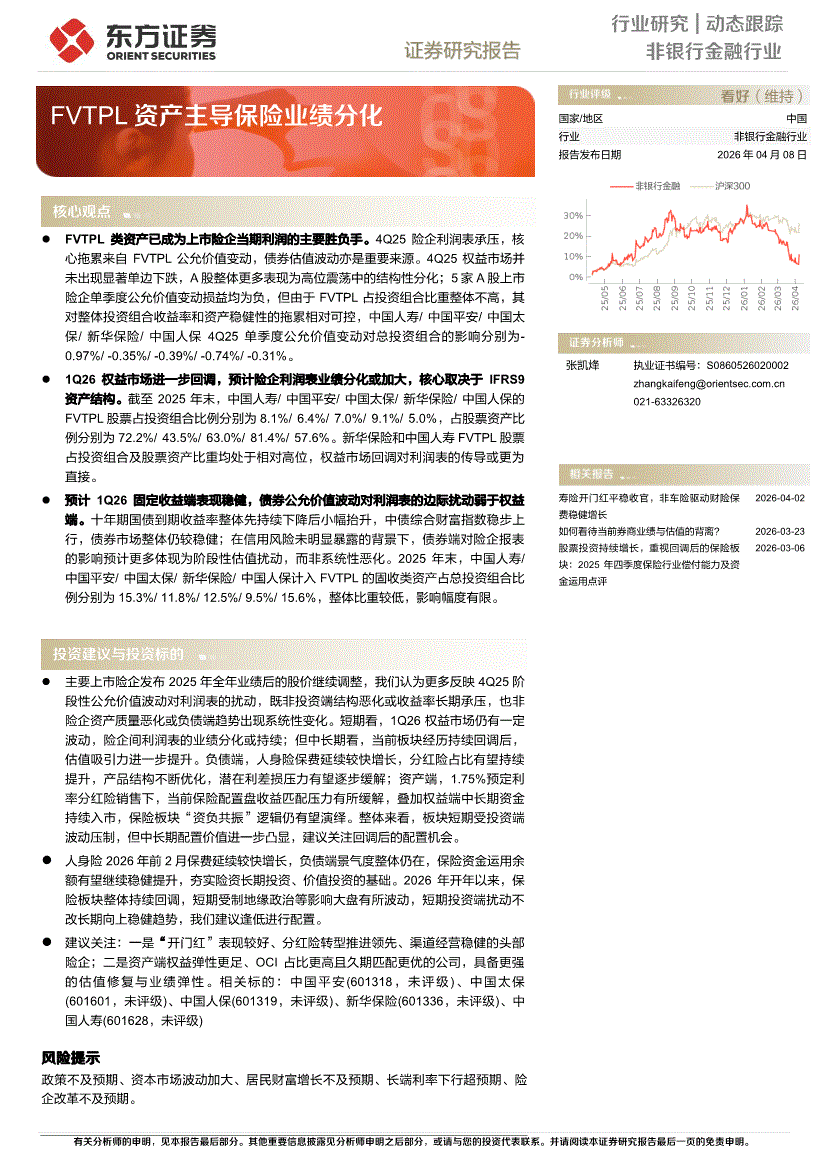 非银行金融行业:东方证券-非银行金融行业:FVTPL资产主导保险业绩分化-260408