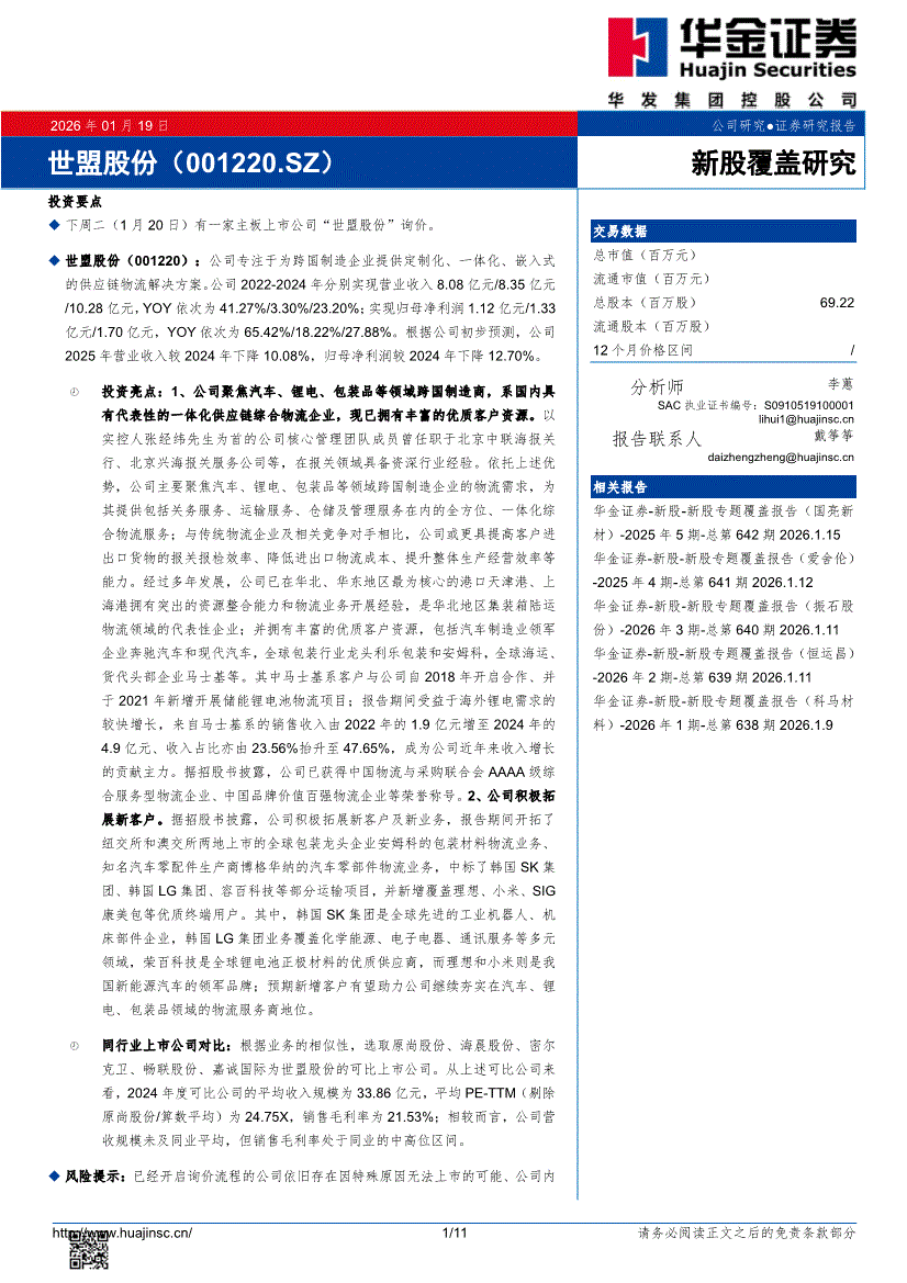 世盟股份:华金证券-世盟股份-001220-新股覆盖研究-260119