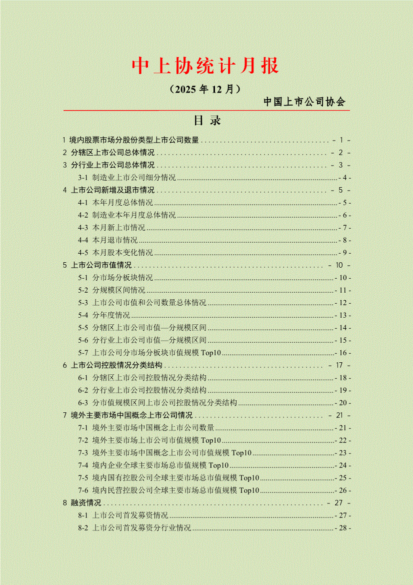 中国上市公司协会-中上协统计月报(2025年12月)-260211