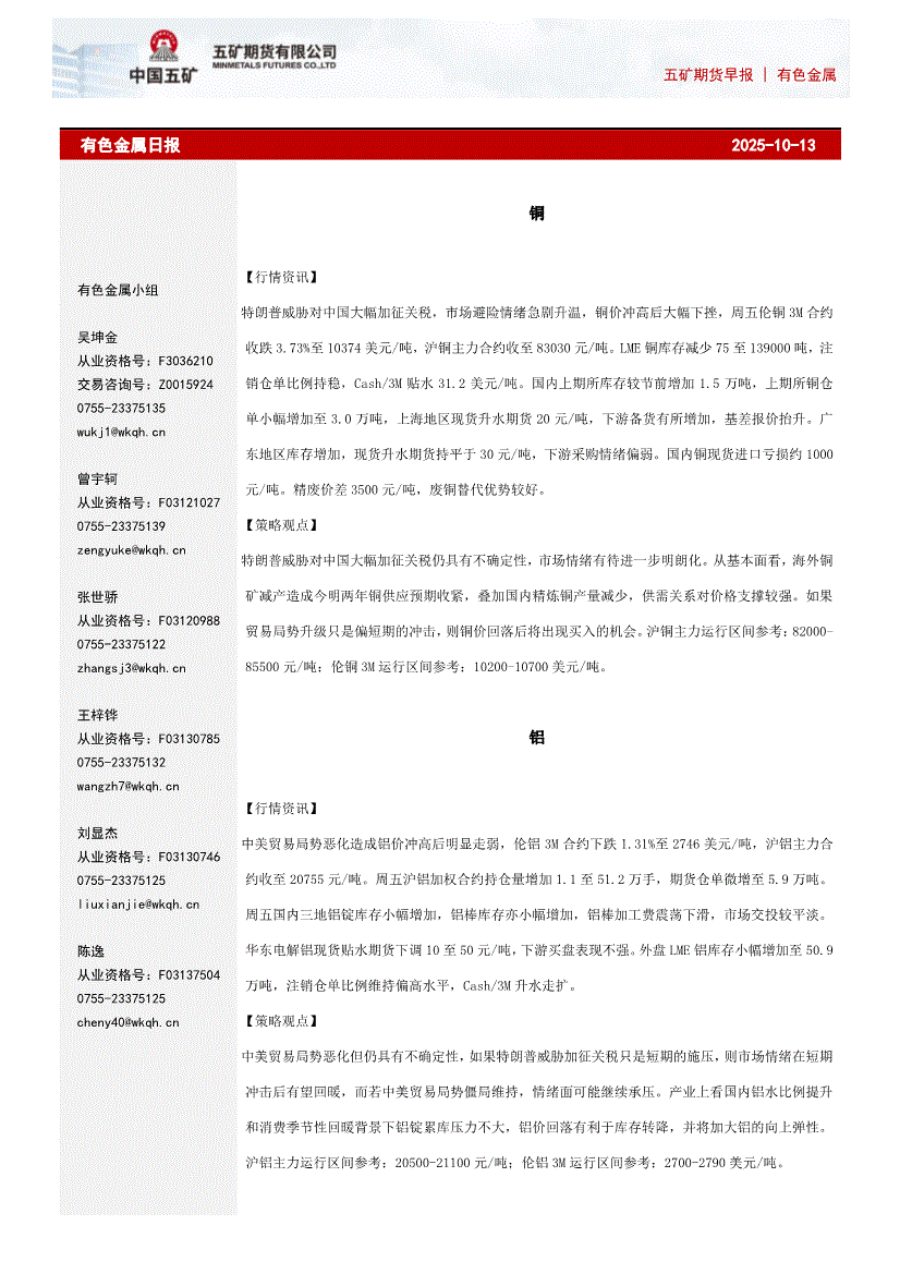 五矿期货-铜周报:中美经贸谈判变化左右市场情绪-251018