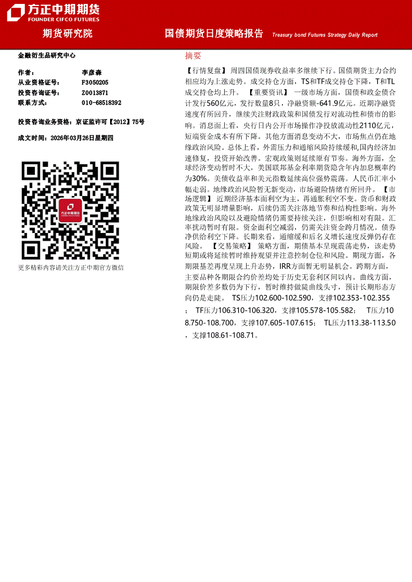 方正中期期货-国债期货日度策略报告-260326