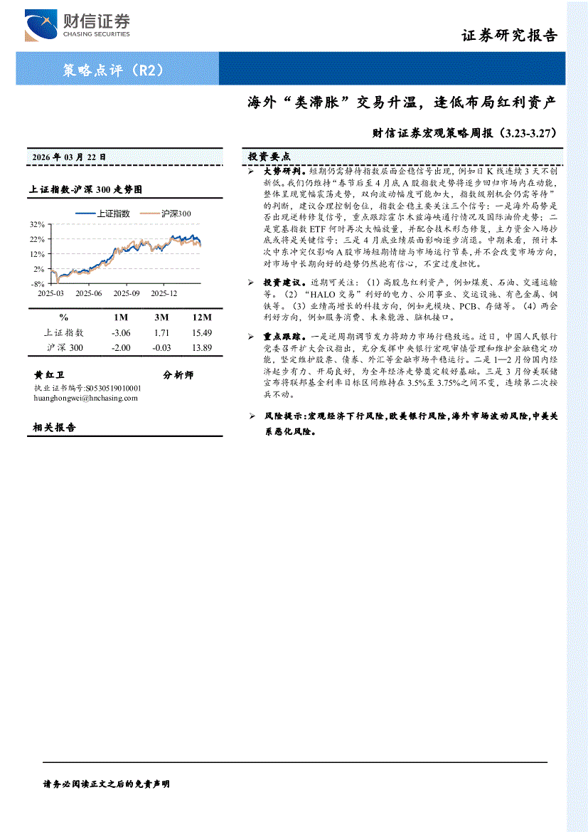 财信证券-宏观策略周报:海外“类滞胀”交易升温,逢低布局红利资产-260322