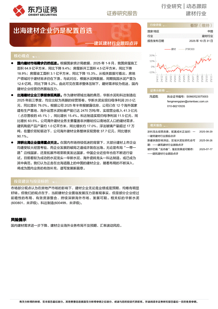 建筑建材行业:东方证券-建筑建材行业跟踪点评:出海建材企业仍是配置首选-251031