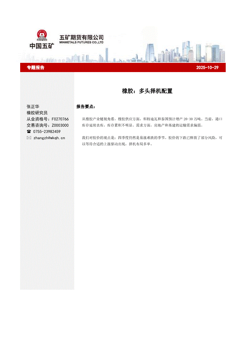 五矿期货-橡胶周报:橡胶有企稳反弹迹象-251018