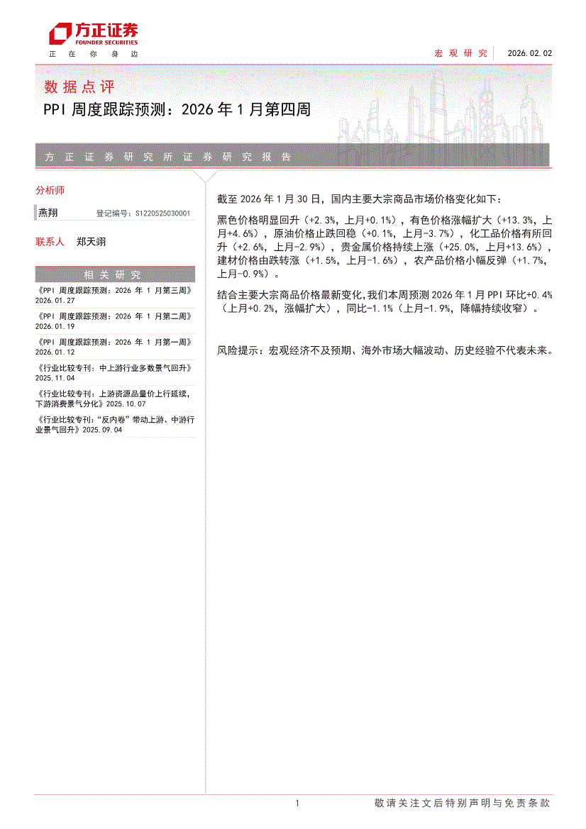 方正证券-数据点评:PPI周度跟踪预测,2026年1月第四周-260202