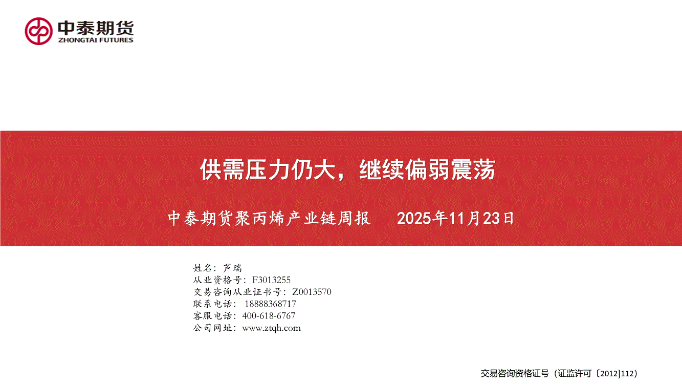 中泰期货-聚丙烯产业链周报:供需压力仍大,继续偏弱震荡-251123