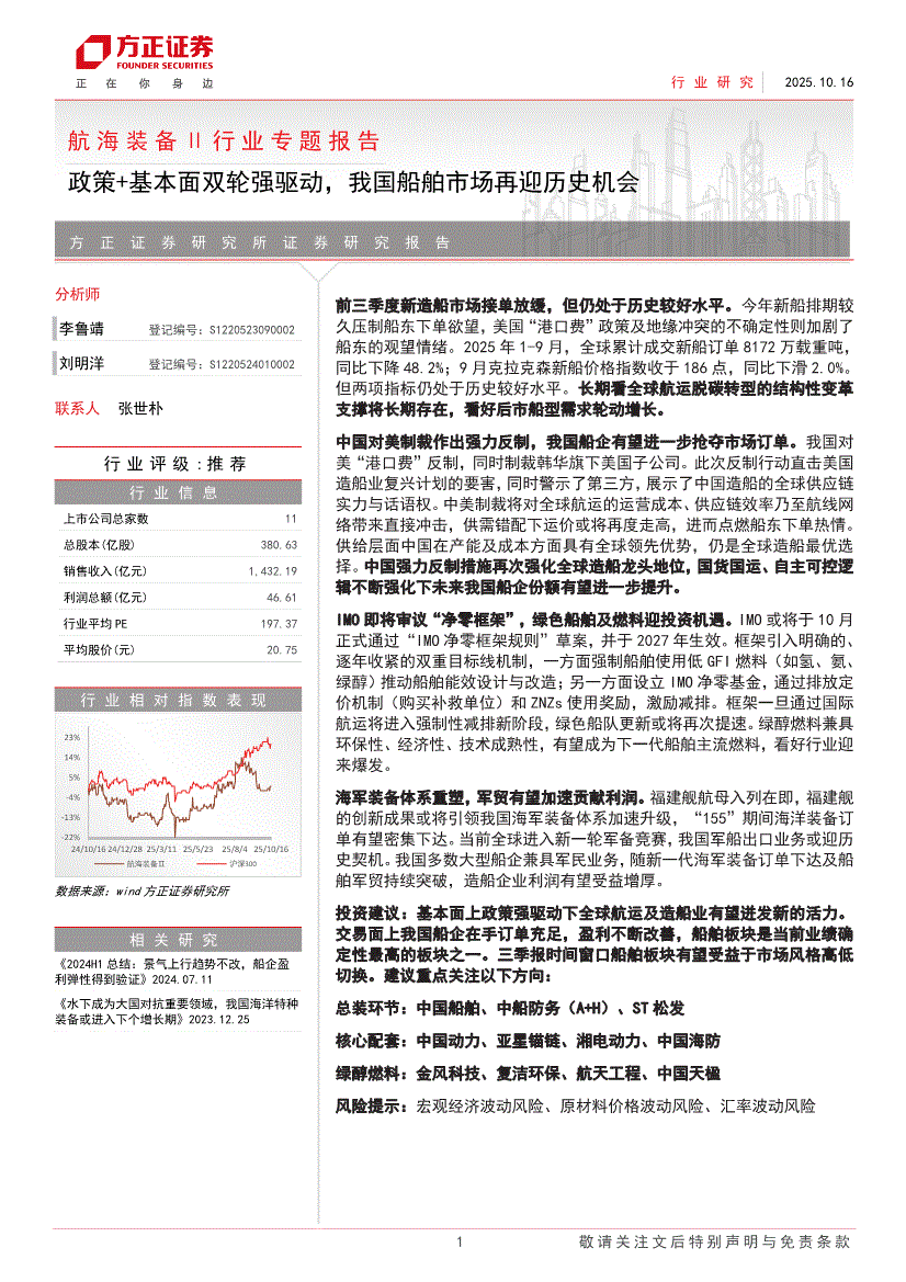 航海装备行业:方正证券-航海装备Ⅱ行业专题报告:政策+基本面双轮强驱动,我国船舶市场再迎历史机会-251016