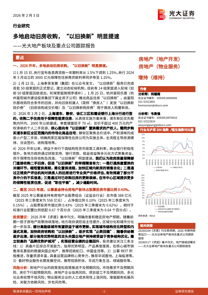 房地产行业:光大证券-房地产行业地产板块及重点公司跟踪报告:多地启动旧房收购,“以旧换新”明显提速-260203