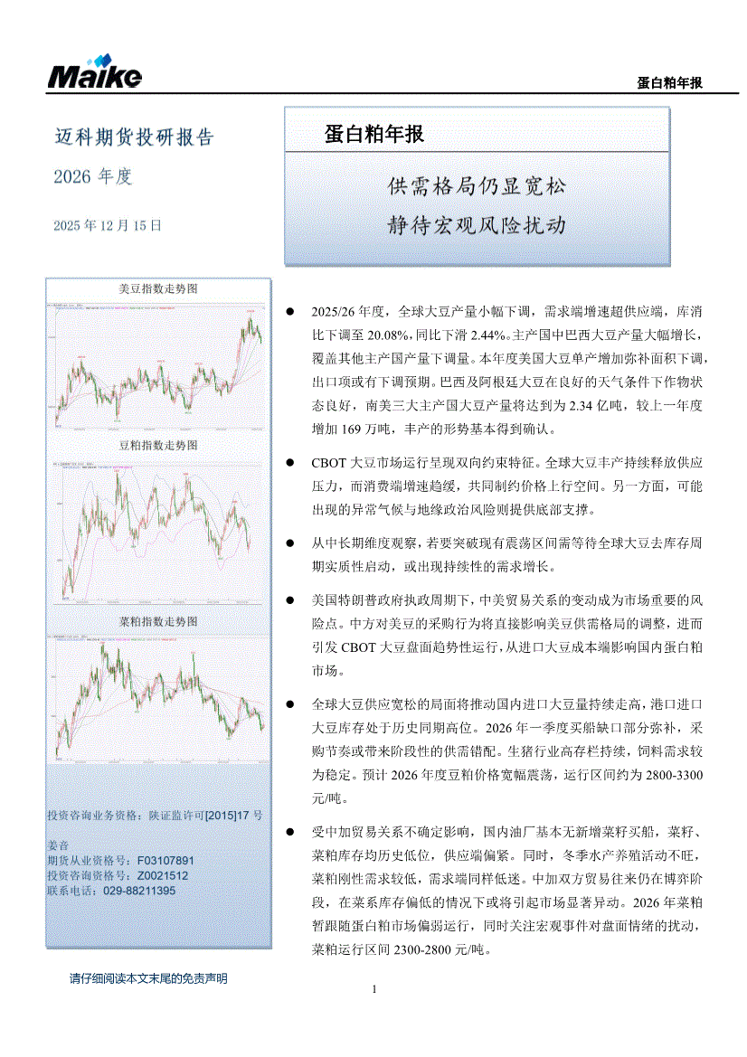 迈科期货-蛋白粕年报:供需格局仍显宽松,静待宏观风险扰动-251215