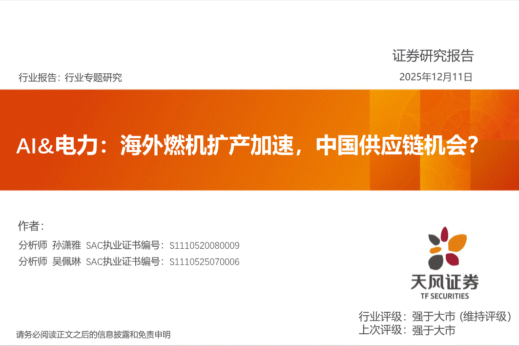 AI&电力行业:天风证券-AI&电力行业:海外燃机扩产加速,中国供应链机会?-251211