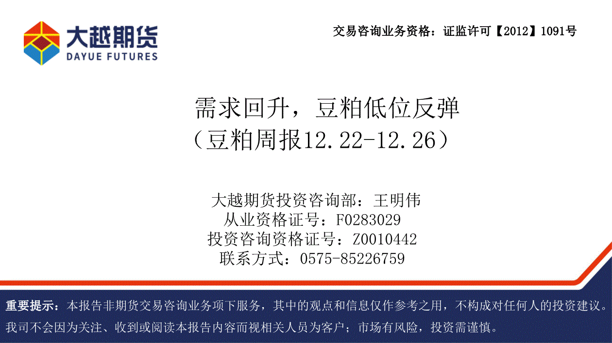 大越期货-豆粕周报:需求回升,豆粕低位反弹-251226