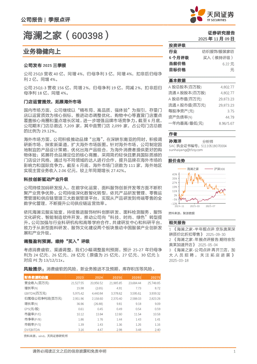 海澜之家:天风证券-海澜之家-600398-业务稳健向上-251109