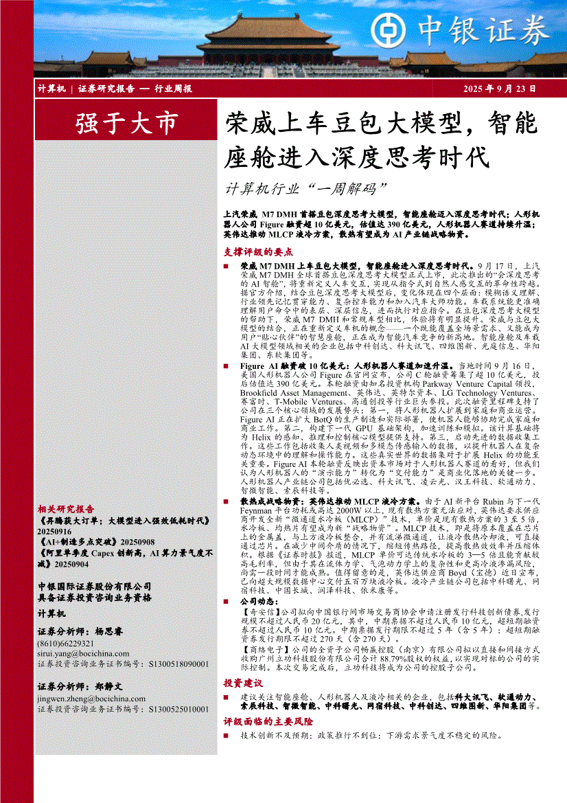 计算机行业:中银国际-计算机行业“一周解码”:荣威上车豆包大模型,智能座舱进入深度思考时代-250923