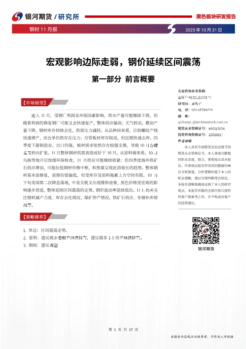 银河期货-钢材11月报:宏观影响边际走弱,钢价延续区间震荡-251031